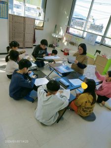 年明け1月のカレンダー作りと、冬休みの思い出のアクティビティ。