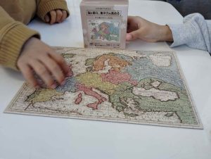 ついにヨーロッパのパズルが完成~。みんな大喜びでした。300ピースと侮るなかれ、大人向けなので結構ハードでした。