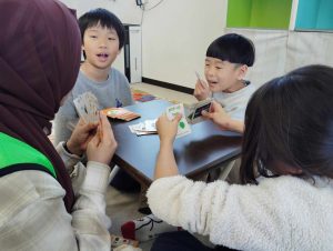 あまり時間がなかったので、次回にまた遊びましょう。新しいことをしてみると、改めて子どもたちの英語の上達を感じますね。