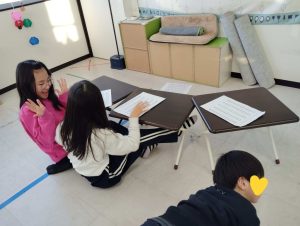 発音練習をしっかりやりました。どんどん上手になる自分を楽しんで、お友達との切磋琢磨が大いにできた良い時間でした