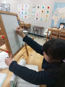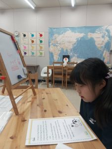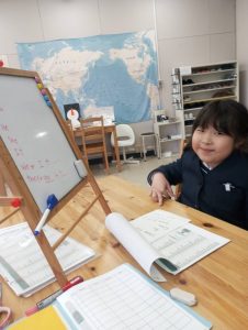 今日から通常スケジュールが始まったAちゃん。いつものように宿題を済ませて、読み物や単語のスペルゲームで遊んで過ごしました。