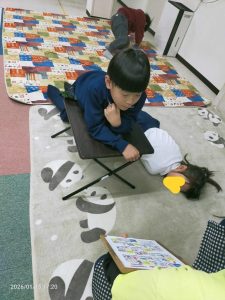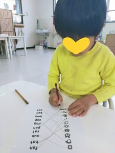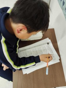 今日は英検クラスの都合で、第一教室にほとんどの子どもが滞在。半分くらいの子どもたちが今週末の英検受験予定で、その子どもたちの熱量と緊張感で、クラスの雰囲気はいつもと全く違いました。いつもはゆったりリラックスした雰囲気の中ですごしている1年生たちには少し重苦しい雰囲気だったかもsれませんが、こういうこともたまに垣間見るにはとても良いのではないかと思いました。