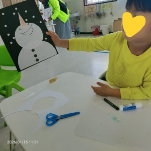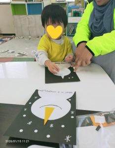 今日は主にゆきだるまのクラフトやワークシートを楽しみました。