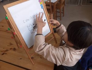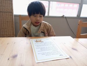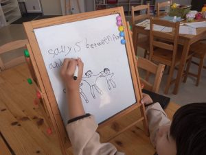 前置詞のことを教えてもらったら、それを遊び感覚のゲームで楽しく実践。