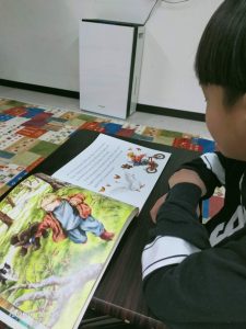 Aくんは、今日初めての絵本を読んでみてくれました。かわいいストーリーだと笑いながら読んでいました。初見でこれだけ読めて内容を理解できたら十分ですね。これから英語の本をどんどん読んでいってもらえたら上達に繋がると思いますし、異文化を知るチャンスが大いに増えると思います。