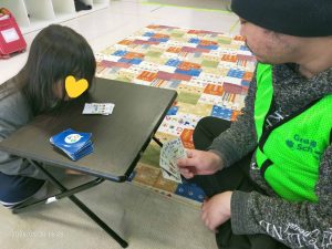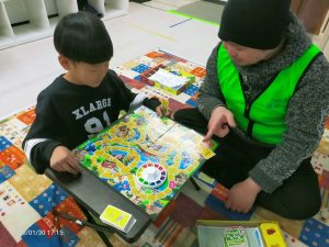 でも、それらが終わったら、折り紙で遊んだり、人生ゲームを遊んだり。1年生たちはあやとりを楽しんだり。学童らしい時間を英語で過ごせました。