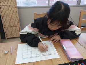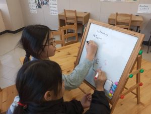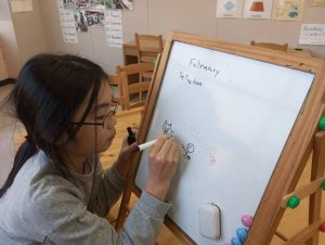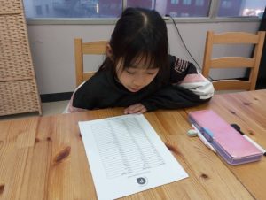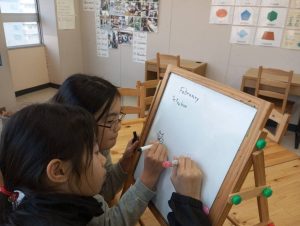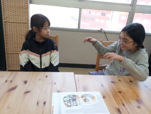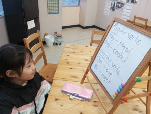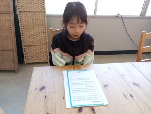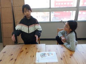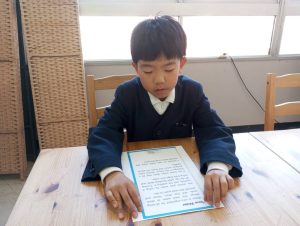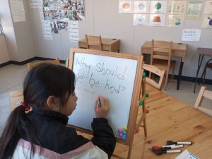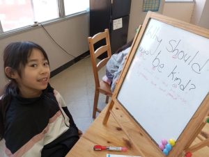 リーディングの練習に使っているBe Kindというお話から、どうしてBe Kindにした方がいいのかを考えてみてもらいました。ただ文章を読んで暗記するだけでなく、内容理解を深めて自分で考えるということはとても大切ですね。