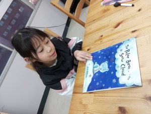 新しい雪の絵本を読んでみてもらいました。自分で読めて楽しめるなんてすばらしいですね。