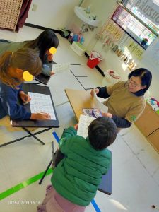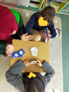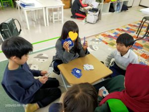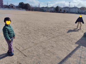 雪も消えた旭が丘小学校の校庭で、子どもたちの出待ちの間。昼間は思ったより暖かく感じられました。