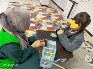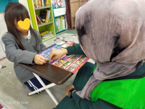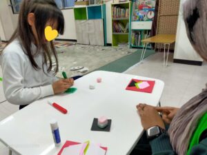 英語学童の女の子にも、おひなさまのアクティビティ
