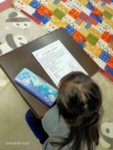 年上の子たちは、こんなに難しいことに取り組めるようになって、立派になりました。でも全て通過点。少しずつ積み重ねて自分の言葉を紡いでいってくださいね。