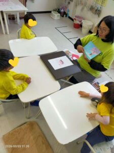 サークルタイムの中での発話が盛んになって来た手ごたえをしっかり感じられて、とっても嬉しいです。自分のことを自分の言葉で伝えられる要因ある練習は、決して簡単ではないけれど、できるようになりますよ。