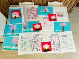 今日はおひなさまでした。プリスクールにも女の子が来てくれているので、おひなさまを題材にした内容を多く盛り込みました。もちろん男の子もいましたが、自国の文化を知るまたとない機会なので、一緒に楽しんでもらいました。