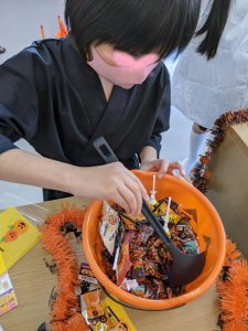 スクールに戻ってきたら、”Trick or Treat”で、お菓子をいっぱいもらっておしまい。