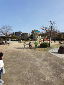朝の学習時間を済ませて、公園へ遊びに行きました。スクールに戻ってからお弁当をみんなで食べて、また遊びました。