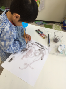 思い立って、ペイントに取り組むHくん。今日は他の取り組みにも夢中になっていました。