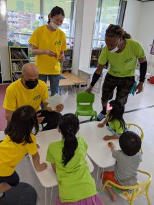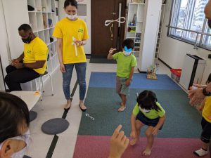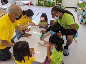 テーブルタイムのあとは、Miss Hiromiのアートタイムで遊びました。