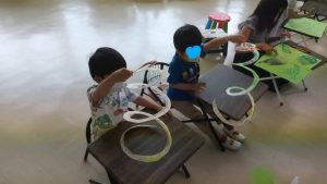 習った英語の言葉を使った、アートクラフト。今日はこれが大好評でした^^
