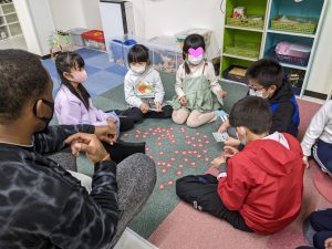 2021年12月23日 / 最終更新日時 : 2021年12月24日 nakajima プリスクールと英語学童 12月23日(木) 松ぼっくりのクリスマスツリーを作る下準備 公園へ 松ぼっくりのクリスマスツリー作りに取り掛かりました 再び公園で、今度はサッカーとドッジボール スクールに戻ってから、それぞれで遊んでいたら・・・ サンタクロースの登場~ 今日がクリスマス前最後の日になる子どもたちに、Green School からクリスマスプレゼントが届けられました。 それからまたひとしきり遊んで、今日を終えました。