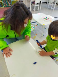 テーブルタイムではそれぞれの取り組みを楽しんでくれました。