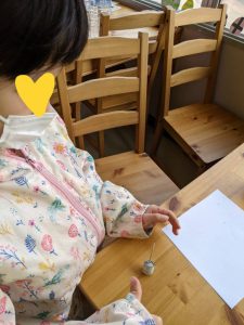 年上の子たちは、新聞紙コマを作りました。シンプルで、地道な作業です。しかし、このプロセスには大切なことがいくつか含まれています。こちらも忍耐力を要しました(;’∀’)