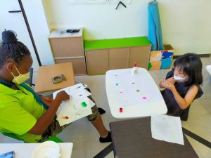 その後、午後のアクティビティタイム。今日は、コーヒーフィルターを使って色の実験を楽しみました。