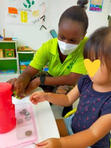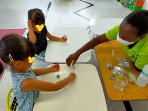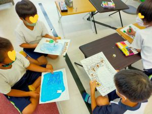 宿題とおやつを済ませたら、Miss Hiromiのクラフトアクティビティ。マグネットを使った面白いおもちゃを作りました。