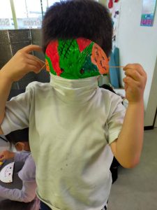 クラフトでは、ハロウィンデコレーションを作りました。ハンドモンスターだ~!