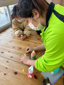 メインアクティビティは、クラフト。白いフクロウ作りでした。