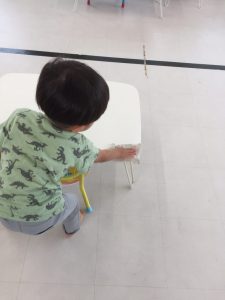 サークルタイムの絵本は、長めのストリーでしたが、子どもたちはずっと楽しんで聞いてくれました。Music Time は、ペットボトルを楽器に見立てて、リズムを取りながら、一緒に楽しみました。