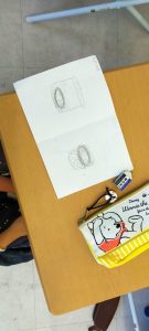 子どもたちからは、”おー”という驚きの声が・・・。それもそのはず。ガラス瓶の中の卵は、およそ1.5倍に膨らんでいて、気泡は雲のように上にたまっていました。そして、昨日描いた卵の様子と大きく違っていたこと、それは、昨日は便の底に沈んでいた卵が水面に浮きあがっていたことです。沈む、浮かぶ、そんな言葉も確認しながら、今日の観察記録を描いてもらいました。
