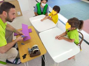 クラフトタイムは、2つのステーション。ハロウィンランタンか、リンゴのクラフトが選べました。