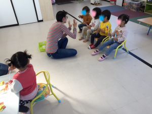 一番年下のSちゃんは、ワークに取り組みながらサークルタイムに参加してくれました。年上のSちゃんが、サークルタイムの時に、IくんにHugしてくれました。今日は今までで一番2人が仲良く遊んだ日かもしれません。