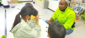 私がお迎えから戻ったら、ちょうど公園から子どもが戻ってくるところでした。驚いたのは、子どもたちが持ち帰ってきたのは皆落ち葉でした・・・(;^ω^)春の緑を楽しむ目的のアクティビティでしたが、私の言葉が足らず落ち葉拾いになっていました。反省したのは、言葉が足らなかったことだけではありません。春といえば、草木が茂り花が咲く、というイメージは四季の変化が著しい日本の風土からくる文化なのだということを忘れていたことです。その証拠に、このアクティビティの企画を他の外国人スタッフと同じような条件で聞いていた日本人スタッフの一人も、落ち葉を拾ってきた子どもたちに驚いたということなので、やはり日本人の意識なのでしょうね。次回からは、緑の葉という言葉を足すべきでしょう。