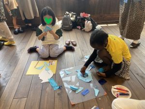モチーフは、萩の名産の一つ、夏みかん。もう一つは日本海の荒波で育った新鮮なお魚。それらのサンキャッチャーを作ってもらいました。