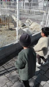 d great weather today so we were able to go to the park today! It’s been a while since we’ve been able to go on a Tuesday so the students were very excited. Today they decided to spend most of their time with the goats. K. and O. wanted to feed them, so they found some sticks. After I told them that goats don’t eat sticks, they asked me what they do eat. I showed them the hay and they were very excited to gather the pieces that had fallen outside the pen. When the goats ignored the hay, the boys guessed that they were full, or maybe sleepy. It was a good opportunity for them to interact with animals.