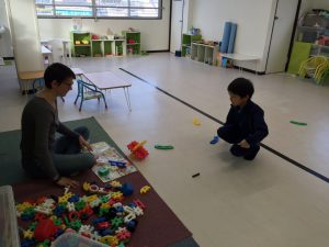 いつになく、宿題を終えるのが早かったRくん。遊び時間がたっぷりあったみたいです。Miss Kimberlyと、ブロックを楽しみました。