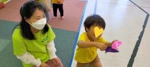今回も、YくんがMs. Thahaniにコアラの折り方を教えてくれました。