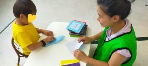 今日はプリスクールに、小さな女の子とお母さまが見学に来てくださいました。