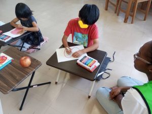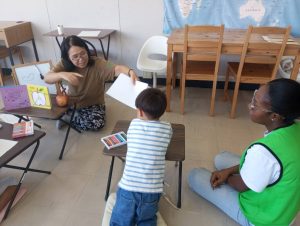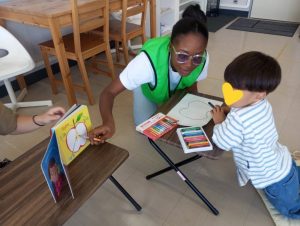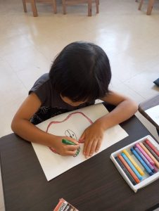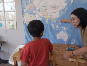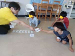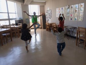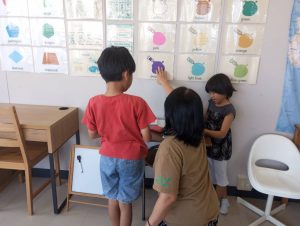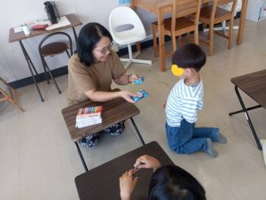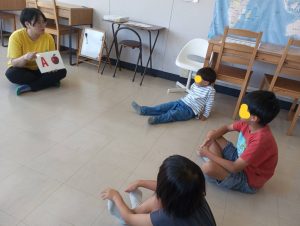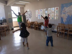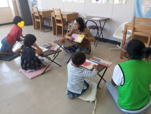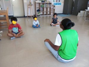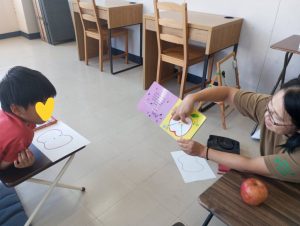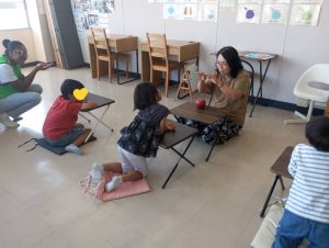 アクティビティを始める前に、先週の出張先のことを子どもたちにシェアしながら、小さなお土産を手渡しました。