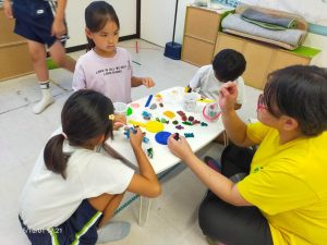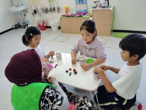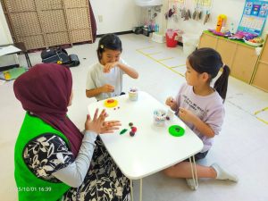 今日はねんど遊びを楽しみました。久しぶりのこういう雰囲気は嬉しいですね♪特にKちゃんは、うちのプリスクール出身で、こういう活動が多かったので、タイムスリップしたかと思うくらい不思議な感覚でした。