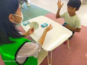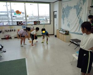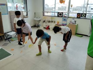 ハロウィンうちわで紙とばしレース。盛り上がりました^^