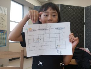 10月1日なので、10月のカレンダーを作ってみました。10月の祝日やイベントについて話しながら、マイカレンダーを作りました♪