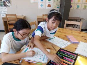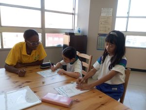 宿題を終えた高学年クラスのおしゃべりタイム