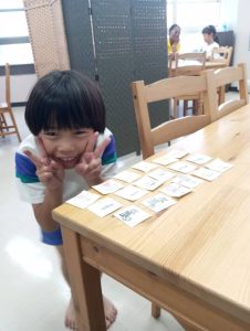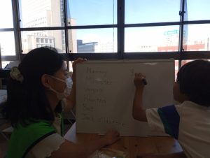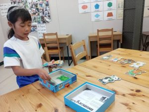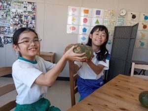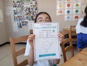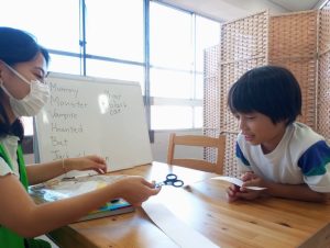 高学年の今日のアクティビティは、ハロウィンにちなんで、カボチャのことを題材に。そして、モンスターを使った可愛いゲーム。