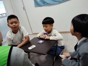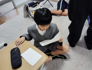 一方、第2教室のアドバンスクラスでは、ついに単語テストなるものを行いました。いよいよこれは勉強のようになってきましたね(;’∀’)しかし、子どもたちが前向きに楽しんで頑張る姿を見て安堵しました。