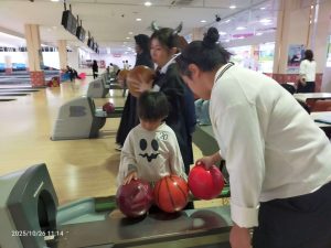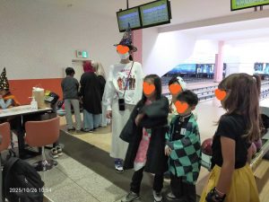 楽しい楽しいボーリング大会になりました。これまでは子どもたちだけのハロウィンパーティでしたが、ご家族でご参加いただき、ご家族同士はもちろん、スクールスタッフとの交流もしてもらえて、これもとても良い機会だと感じました。
