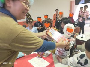 最後はTrick or Treatで子どもたちにお菓子のプレゼント♪