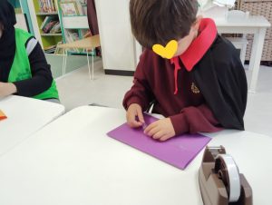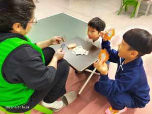 午後は公園に行けなかったので、ハロウィンバッグづくりとハロウィンビンゴ。
