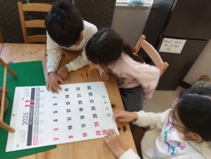 Thanksgiving Dayについてのお話をして、カレンダーで今年のThanksgiving Dayがいつかを確認。